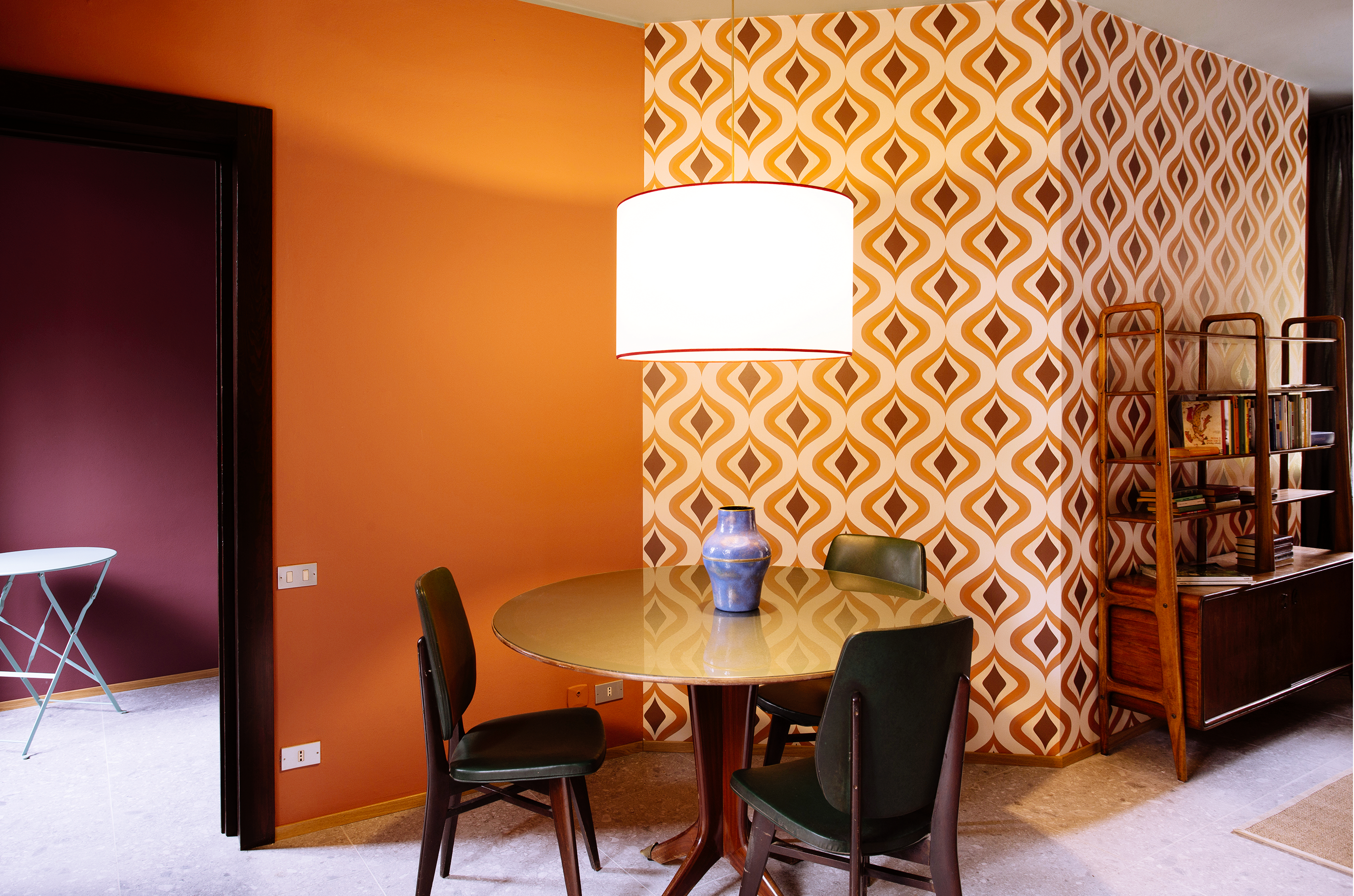 La Suite Lavarello vanta un ingresso privato e un ampio patio con vista lago, perfetto per momenti all’aperto in totale relax. All’interno, spiccano interni audaci in arancio e viola, con arredi vintage, una elegante libreria in rovere e sedute in tessuto verde, capaci di evocare un fascino retrò ma accogliente. La cucina, completamente attrezzata con elettrodomestici moderni, e l’illuminazione a LED contribuiscono a garantire comfort e praticità. Il bagno, rifinito con piastrelle bianche e dettagli in ottone, richiama lo stile degli anni ’60, unendo charme e funzionalità.